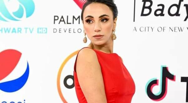 زينب ظهرت برداء أحمر اللون وشكلت هذه الإطلالة الستايلست أيات سيف النصر والرداء من تصميم Bambah.