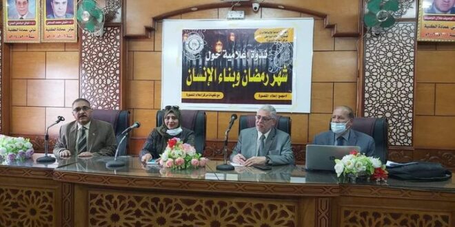 بناء الإنسان يحتاج إلى بناء العقيدة والإيمان، والعقل والفكر، والصحة العامةوقوة الجسم، وهدوءالنفس وقوه الإرادة، وتعزيزالقيم والسلوك، و كل ما يمس حياة الإنسان وها نحن ننتظر قدوم شهر رمضان الذى يعد افضل مدرسه لبناء الإنسان من هذا المنطلق عقد مركز إعلام المنصورة التابع للهيئة العامة للإستعلامات ندوة تثقيفية موسعة بعنوان ” شهر رمضان وبناء الإنسان ” اليوم الأحد بكليه اللغة العربية بالمنصورة .