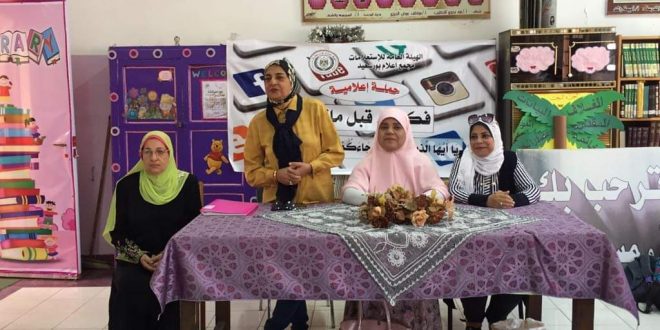 عقد مجمع إعلام بورسعيد التابع للهيئة العامة للاستعلامات ندوة بعنوان ” أضرار نشر الشائعات على المجتمع ” ضمن حملة ( فكر .. قبل ما تشير ) بالتعاون مع مديرية التربية و التعليم ببورسعيد و إشراف ادارة العلاقات العامة و الاعلام بقيادة الأستاذ محمد ضياء حيث عقدت ندوة بمدرسة 6 اكتوبر الثانوية بنات واستضاف فيها الدكتورة زينب السماحى استاذ علم النفس بجامعة بورسعيد بحضور الأستاذة مرفت الخولي مدير عام إعلام القناة و مجمع إعلام بورسعيد و الأستاذة هالة سمير مدير إدارة المدرسة والاستاذة نيفين بصلة أخصائي اعلام بمجمع إعلام بورسعيد و الأستاذة وئام مسئول إدارة العلاقات العامة بالمديرية والاستاذة مى السعيد والاستاذة امانى زين العابدين اخصائى المكتبة بالمدرسة و شارك فيها عدد كبير من الطالبات .