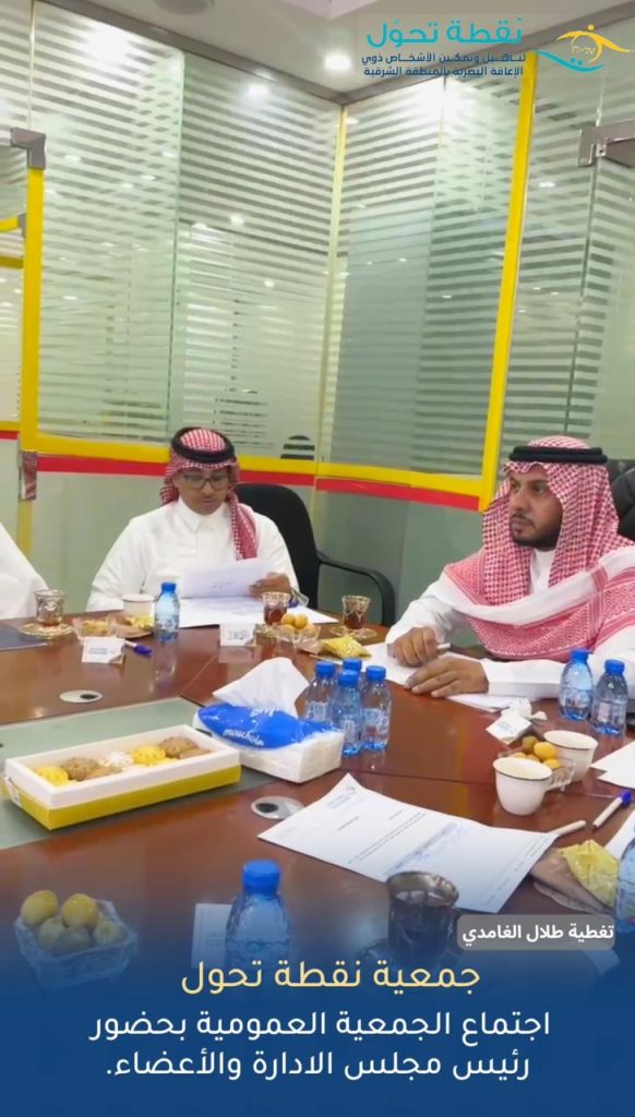 عقدت الجمعية العمومية العادية الثانية لجمعية نقطة تحول إجتماعها وذلك بمقر الجمعية يوم الأحد الموافق: 20/10/2024 وذلك برآسة أ. علي بن صالح أبو عدلة الغامدي رئيس مجلس الإدارة حيث شارك في الاجتماع عدد كبير من أعضاء الجمعية العمومية ومجلس الإدارة حضوريًا.