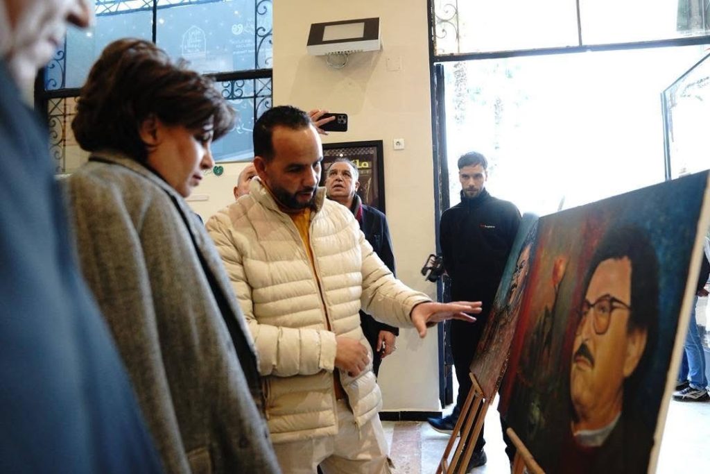 واستهلت السيدة الوزيرة زيارتها بجولة في معرض اللوحات التشكيلية المقام في بهو المسرح، والذي يضم أعمالاً خصصها الفنانون لتكريم الفقيد عبد القادر علولة، تقديراً لمسيرته المتنوعة في المسرح والفن التشكيلي، وإحياءً لإبداعاته وإسهاماته الخالدة في الثقافة الوطنية.