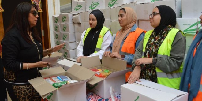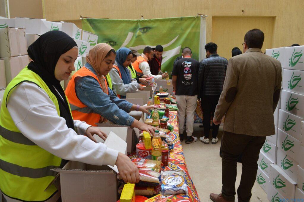 استعداد لتوزيعها.. طلاب جامعة المستقبل يشاركون فعالية لتجهيز كراتين رمضان