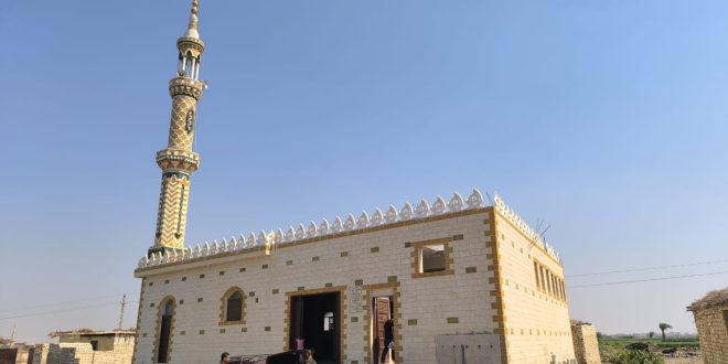 أنشأت مؤسسة أحباب فى الله للمساعدات الاجتماعية ، المسجد على مساحة 550 متر و ارتفاع ٦ أمتار ومأذنة طولها حوالى ٣٠ مترا وذلك بالتبرعات الذاتية ، حيث كانت القرية تفتقر إلى وجود مسجد بهذا المكان ويذهب أهالى القرية للقرى المجاورة للصلاة ، فضلا أن عدم وجود مسجد بالقرية كان يعد عائقا كبيرا عند صلاة الجنازة فكان يتم حمل المتوفي علي الأكتاف والسير به مسافة طويلة للصلاة عليه بمساجد القرى المجاورة حتي يتمكنوا من أداء صلاة الجنازة .