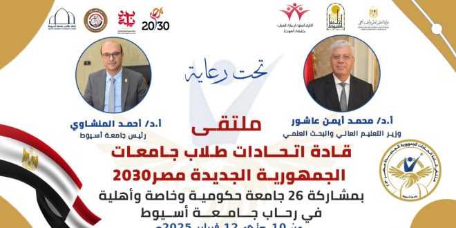 وفي هذا الإطار، وتحت رعاية الدكتور أيمن عاشور، تنظم جامعة أسيوط، غدًا الإثنين 10 فبراير، فعاليات ملتقى “قادة اتحادات طلاب جامعات الجمهورية الجديدة.. مصر 2030″، برئاسة الدكتور أحمد المنشاوي، رئيس الجامعة، وبمشاركة قادة الاتحادات الطلابية من 26 جامعة مصرية. ويهدف الملتقى إلى تنمية المهارات القيادية للطلاب، وتعزيز التواصل بين رؤساء ونواب الاتحادات الطلابية لدعم العلاقات والروابط بينهم.