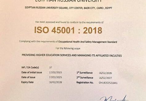 من جانبها، قالت الأستاذة إكرام محمد عبد الحميد، الأمين العام للجامعة المصرية الروسية، أن تلك الخطوة تأتى فى إطار سعى إدارة الجامعة الدائم فى تحقيق أحد أهم أهدافها الإستراتيجية وهو تحقيق مكانة مرموقة على المستويين الإقليمى والدولى بين جامعات العالم.. مؤكدة أن جميع إدارات الجامعة المختصة أزالت جميع العقبات أمام لجان زيارة إعتماد شهادتى “ISO 45001 وISO 14001″، وتم توفير الدعم الفنى والإدارى من: “تجميع البيانات المطلوبة، التنسيق بين الإدارات المشتركة للوصول إلى هدف الإعتماد، توفير الوثائق والأدلة الداعمة للحصول على الإعتماد، وتوفير جميع الموارد المالية والبشرية المطلوبة”.
