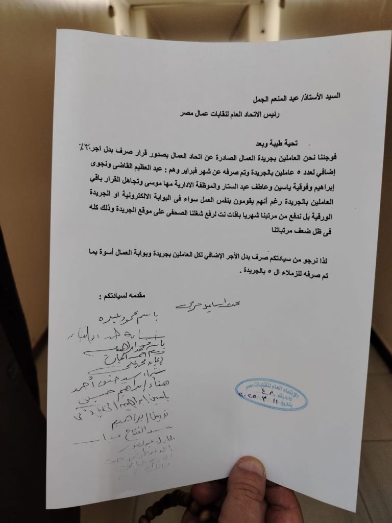 وأشار حماد إلى أن وقائع الفساد التي كشف عنها تتضمن حصول عدد من القيادات التحريرية والإدارية على زيادات غير قانونية في المرتب بنسبة 30% دون وجه حق، مؤكدًا أن هذه المكافآت جاءت بعد نشر مقال وصف فيه رئيس التحرير الشعب المصري بـ”العبيد” والرئيس عبد الفتاح السيسي بـ”الفرعون”.
