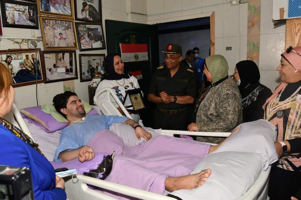 كما قام الوفد بزيارة عدد من مصابى حرب أكتوبر المجيدة والذى مازالوا يخضعون للعلاج الدائم داخل المجمع الطبى ، وعدد من مصابى العمليات الحربية فى سيناء الذى سجلوا أسمائهم بأحرف من نور فى تاريخ العسكرية المصرية نتيجة لتضحياتهم بالغالى والنفيس وتم إهداءهم درع الجمعية متمنين لهم الشفاء العاجل .