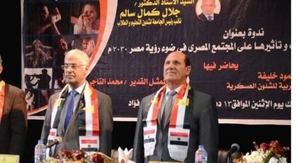 شهد اليوم الإثنين، اللواء محمود خليفة مستشار أمين عام جامعة الدول العربية للشؤون العسكرية ندوة تحت عنوان (التحليل المكانى لظاهرة العنف وتأثيرها على المجتمع المصرى فى ضوء رؤية مصر 2030)، والتي نظمتها الإدارة العامة لرعاية الطلاب بجامعة بورسعيد تحت رعاية وبحضور الأستاذ الدكتور أيمن محمد ابراهيم رئيس جامعة بورسعيد، والدكتور جلال سالم نائب رئيس الجامعة لشئون التعليم والطلاب، وبحضور الدكتورة راوية رزق نائب رئيس الجامعة لشئون الدراسات العليا والبحوث وإيهاب أبو المعاطى مدير الإدارة العامة لرعاية الطلبة، ووسط إجراءات وقائية واحترازية