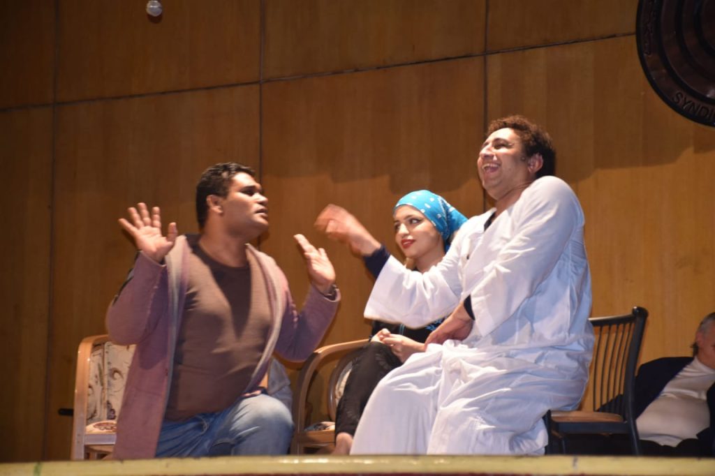 العرض بطولة معتز السويفي ، محمد نصار ، ناصرعبدالحفيظ ، وفاء عبدالله ، أحمد رحومة ، عمرو أصلان ، ، أحمد حداد ، مروه فرحات ، مشاعل ، مني مصطفي ، إبراهيم إربا ، آمال محمود ، رجب محمد ، ، هبه عبداللطيف توثيق وتصوير العروض المخرج الشاب الطويل مستشار إعلامي ومخرج مساعد الكاتبة الصحفية أسماء عفيفي