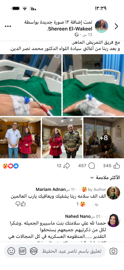 ثلاثة أسابيع عذاب تُختصر في جملة واحدة، ثم ينفتح النص على شكر واضح، محدد بالأسماء والرتب، للأطباء والتمريض والإدارة.