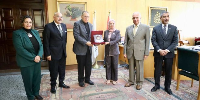أستقبل وكرم اليوم الأستاذ الدكتور / ممدوح مصطفى غراب رئيس جامعة ٦ اكتوبر والسادة نواب رئيس الجامعة ، أ.د / هشام تمراز نائب رئيس الجامعة لشئون خدمة المجتمع وتنمية البيئة ، أ.د/ إيمان العزيزى نائب رئيس الجامعة لشئون التعليم والطلاب و أ.د/ ياسر دكرورى نائب رئيس الجامعة للدراسات العليا والبحوث ، سعادة السفيرة / فوزية بنت عبدالله زينل ، سفيرة مملكة البحرين لدى جمهورية مصر العربية والمندوبة الدائمة لدى جامعة الدول العربية ، وقام سيادة رئيس الجامعة بتقديم درع جامعة ٦ أكتوبر لسعادتها .