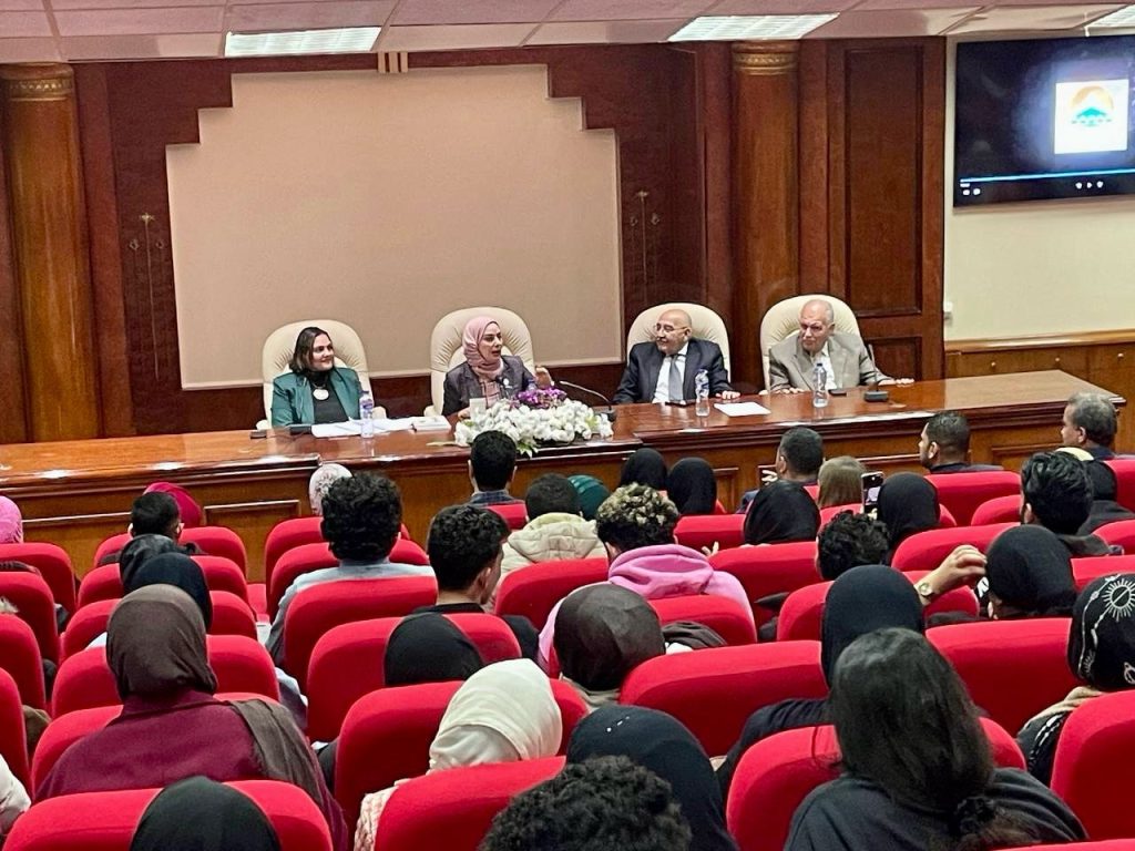 وذلك فى إطار ندوة تحت رعاية قطاع خدمة المجتمع وتنمية البيئة بالجامعة برئاسة أ.د/ هشام تمراز وإشراف أ.د/ دينا فاروق أبوزيد عميد كلية الإعلام وفنون الاتصال بالجامعة والندوة بعنوان ” دور المرأة العربية فى المجتمع والإعلام “.