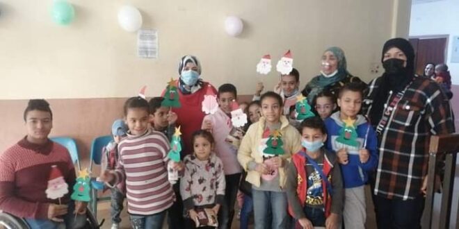 وفقا لتوجيهات الدكتورة إيناس عبد الدايم وزيرة الثقافة، وضمن خطة الهيئة العامة لقصور الثقافة برئاسة الفنان هشام عطوة للإحتفال باليوم العالمى لذوى الأحتياجات الخاصة بالتزامن مع احتفالات أعياد الكريسماس، واهتماما بتنمية مهاراتهم وتثقيفهم وذلك من خلال الإدارة العامة لثقافة الطفل التابعة للإدارة المركزية للدراسات والبحوث برئاسة د. حنان موسي، نظم قصر ثقافة شهداء ٢٥يناير يوم ثقافى ترفيهى لأطفال المركز الحضري للطفولة من الأطفال ذوي الهمم، تضمن مسابقة ثقافية بعنوان “حزر فزر” نفذتها ريهام نبيل شملت معلومات عن عيد رأس السنة وشجرة الكريسماس وشخصية بابا نويل وكذلك معلومات عن فصول السنة وعدد شهورها والفاكهة المرتبطة بكل فصل موسمى، بالإضافة إلى تنفيذ ورش أشغال يدوية لتنمية المهارات الحسية والإبداعية لديهم من خلال إستخدام خامات مختلفه من الورق والألوان للتشكيل بها، وعمل مجسم مبسط لشخصية بابا نويل بورق الكانسون نفذتها فاطمه شعبان، بجانب ورشة لعمل شجره الكريسماس بورق الفوم نفذتها ناريمان نبيل.