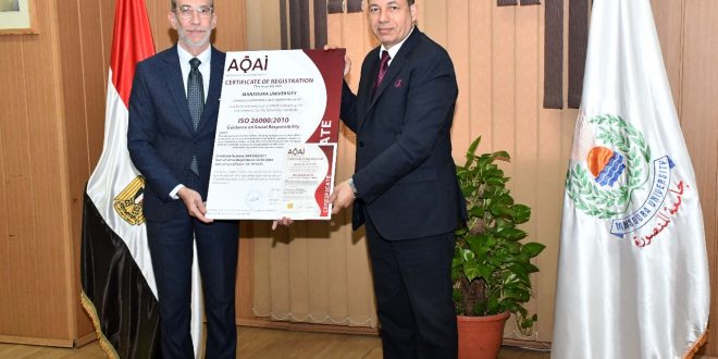 أعلن الأستاذ الدكتور شريف خاطر رئيس جامعة المنصورة حصول الجامعة على شهادة الأيزو 26000 الخاصة بالمسؤولية المجتمعية كأول جامعة حكومية في مصر، وذلك في إنجاز جديد يُضاف إلى سجلها الحافل بالتميز.
