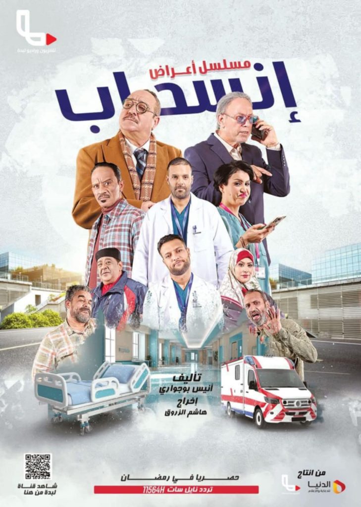 مسلسل اعراض انسحاب تأليف انيس بوجواري واخراج هاشم الزروق انتاج تلفزيون لبدة وبطولة خالد كافو ..نضال كحلول ..عبدالباسط الحداد ..نوال العوضي