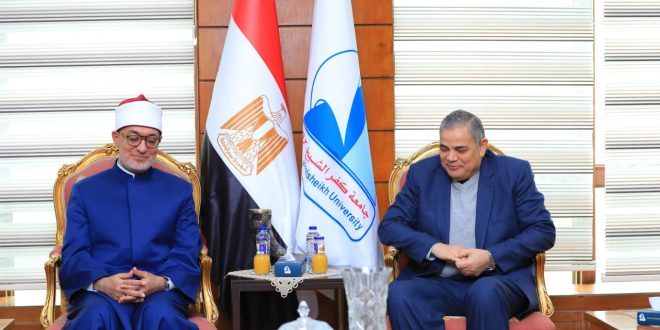 رئيس جامعة كفر الشيخ يستقبل فضيلة الدكتور نظير عياد مفتي الجهورية لإلقاء ندوة توعوية بالجامعة