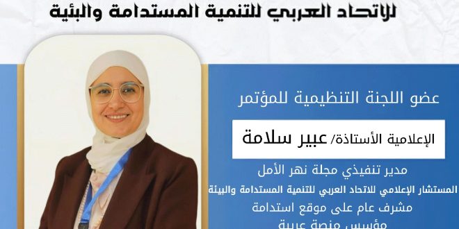 وتشارك الإعلامية عبير سلامة، المدير التنفيذي لمجلة نهر الأمل والمستشار الإعلامي للاتحاد والمشرف العام على موقع استدامة، في أعمال اللجنة التنظيمية للمؤتمر، مؤكدةً دورها في الإشراف على التغطية الإعلامية للمؤتمر ونشر ثقافة التنمية المستدامة وتشجيع الابتكار في العالم العربي.
