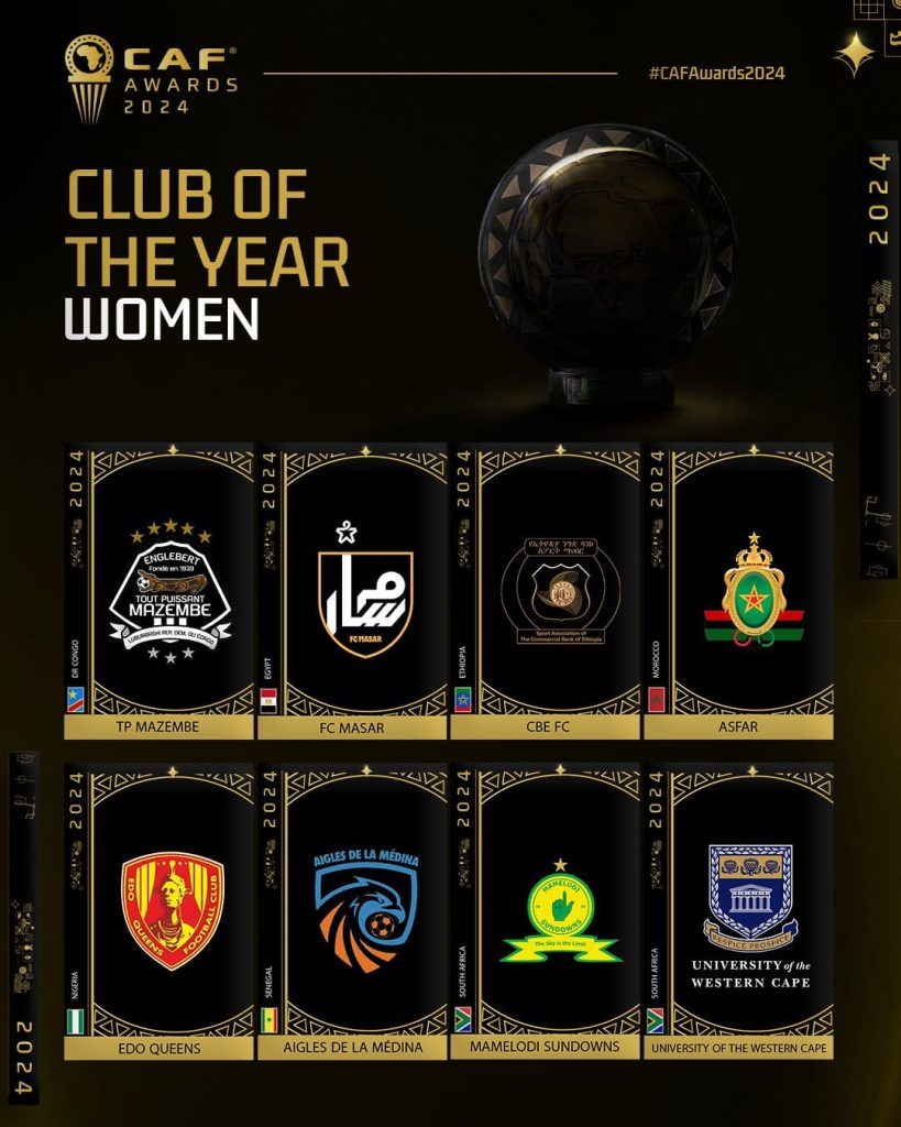 أعلن الاتحاد الإفريقي لكرة القدم (كاف) عن ترشيح نادي مسار للقب أفضل نادي للكرة النسائية في القارة الإفريقية عن عام 2024 في حفل جوائز كاف السنوي، وذلك عبر الحسابات الرسمية للاتحاد.