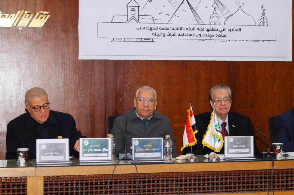 وكلا من ا د هشام سعودي- وكيل النقابة، والمهندس محمود عرفات- أمين عام النقابة، وا د المهندس سعد مكرم- أمين الصندوق المساعد، والمستشار عدلي حسين- محافظ القليوبية الأسبق ورئيس جمعية حماية التراث والبيئة، أطلقت لجنة البيئة بنقابة المهندسين المصرية، برئاسة الدكتورة المهندسة منال متولي، مبادرة “مهندسون لاستدامة التراث والبيئة”، حيث قامت اللجنة بتوقيع بروتوكول تعاون مع جمعية حماية التراث والبيئة، في حضور الأستاذ نادر جرجس- المدير التنفيذي لجمعية تنمية وإحياء التراث المصري، والمهندس الاستشاري مبروك عامر- رئيس شعبة الهندسة الكهربائية ونائب رئيس اللجنة، والمهندس أحمد صلاح وكيل اللجنة ، والمهندس محمد فتحي نصر الدين- مقرر اللجنة، ومهندسة سمر حسب الله والمهندسة الاستشارية د. حنان شريف- المقرر المساعد للجنة.