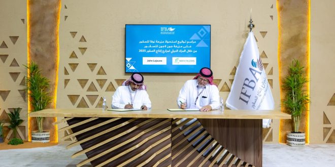 وجرت مراسم توقيع الصفقة في مقر المزاد، بحضور ممثلًا عن شركة “نوفا للصقور” شديد الرشيدي، فيما وقّع عن المزرعة الكندية مالكها جون لوجين الابن.