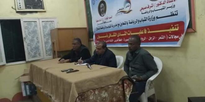 كثفت وزارة الشباب والرياضة من تواجدها بالمحافظات من خلال الأندية الثقافية حيث نفذت وزارة الشباب والرياضة الإدارة المركزية البرامج الثقافية والتطوعية – الإدارة العامة للبرامج الثقافية والفنية بالتعاون مع مديرية الشباب والرياضة بمركز شباب بدر بأسوان نادي ثقافي يتضمن ورشة عمل عن كيفية كتابة المقال الصحفى وذلك ضمن خطة النادي الثقافي لشهر ديسمبر الجاري.